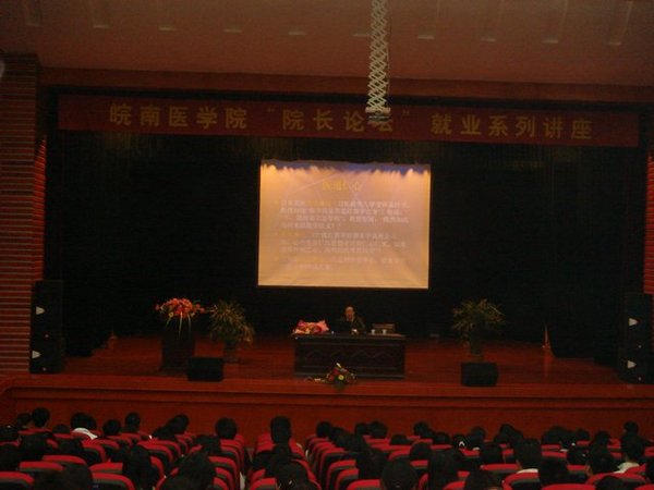 3月31日下午,安徽省立医院院长、安徽医科大学外科学教授、外科学硕士生导师、天津医科大学外科学博士生导师许戈良在我校大学生活动中心作了题为“年轻医生的成长”的就业指导讲座。校党委书记卞国忠,党委副书记、纪委书记程度,副院长李朝品,组织部部长周强,学生处处长钱何珍,副处长阮笑芳及各相关系辅导员莅临讲座现场,800余名应届毕业生聆听了讲座。讲座由副院长李朝品主持。 许戈良教授以一位阔别皖医二十多年老校友的身份,用生动的病例,从医德仁心、学会善待别人、学会合作、磨难也是一种财富、善于思考、如何当一名优秀的医生等几方面,谆谆教导作为一名医学院校在校学生,应该拥有良好的医德,要学会换位思考,要懂得尊重别人,还要敢于挑战传统。讲座结束后,许戈良教授还与现场的学生开展了答疑解惑的互动环节,许戈良教授以渊博的知识、丰富的临床试验、幽默的语言和极具人格魅力的亲和力赢得了在场听众的阵阵掌声。 此次讲座已是我校开展的就业指导系列讲座之三,通过一系列的专家讲座,必将对我校2008届毕业生的就业、择业起到积极的指导作用!