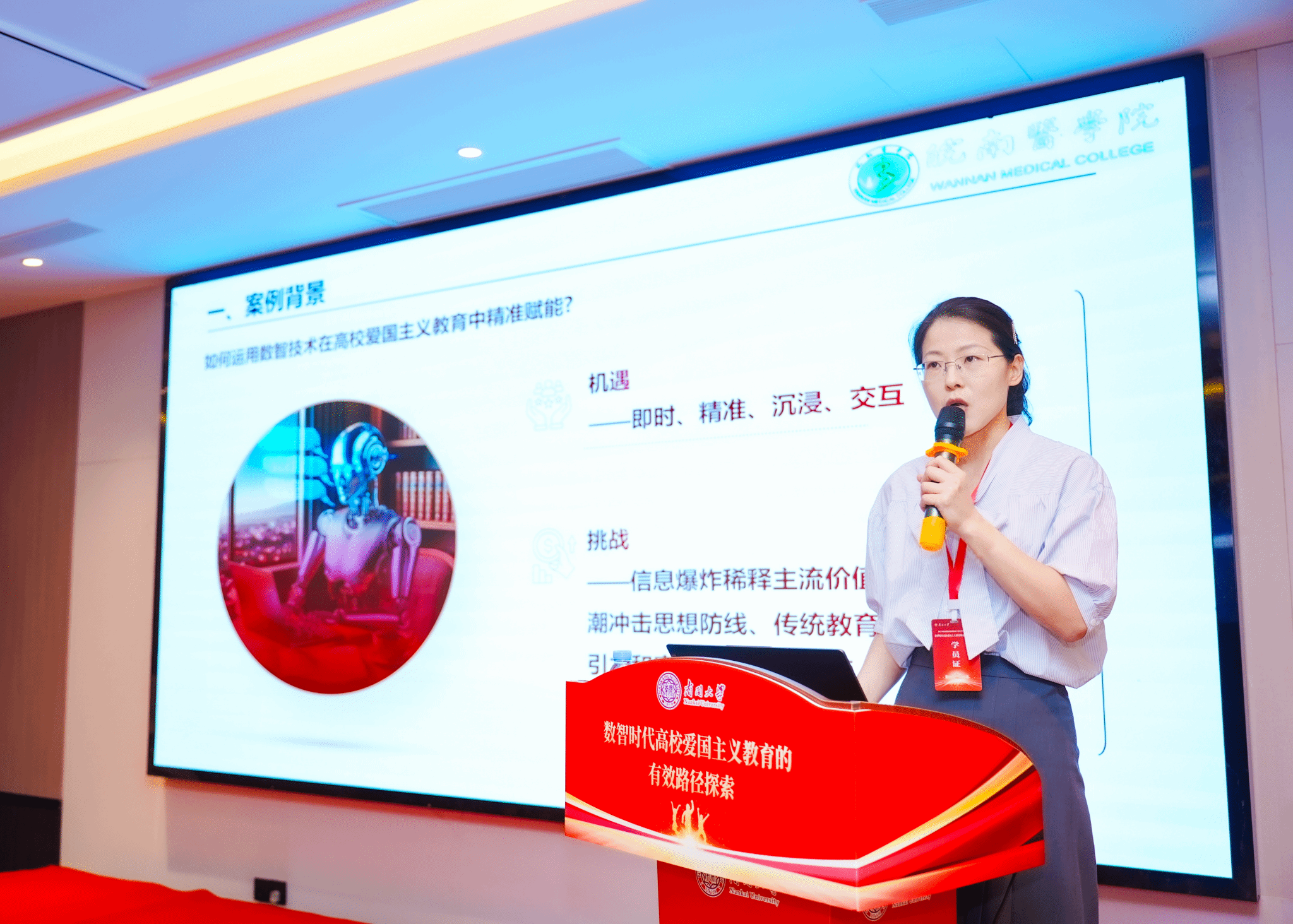 此次示范培训班聚焦数智时代背景下高校爱国主义教育的新挑战与新机遇,专家学者围绕数字化技术在思政教育中的应用、新时代爱国主义教育的创新路径等主题展开深入研讨,为高校思政工作者提供了前沿的理论知识和宝贵的实践经验。张秦的案例分享,以“基础医学院的思政案例”作为主题主线,结合学校在数智时代开展爱国主义教育的实际情况,从问题剖析到解决方案的实施,以详实的数据和生动的案例,展现了我校在数智时代爱国主义教育领域的积极探索,赢得了与会代表的广泛好评。