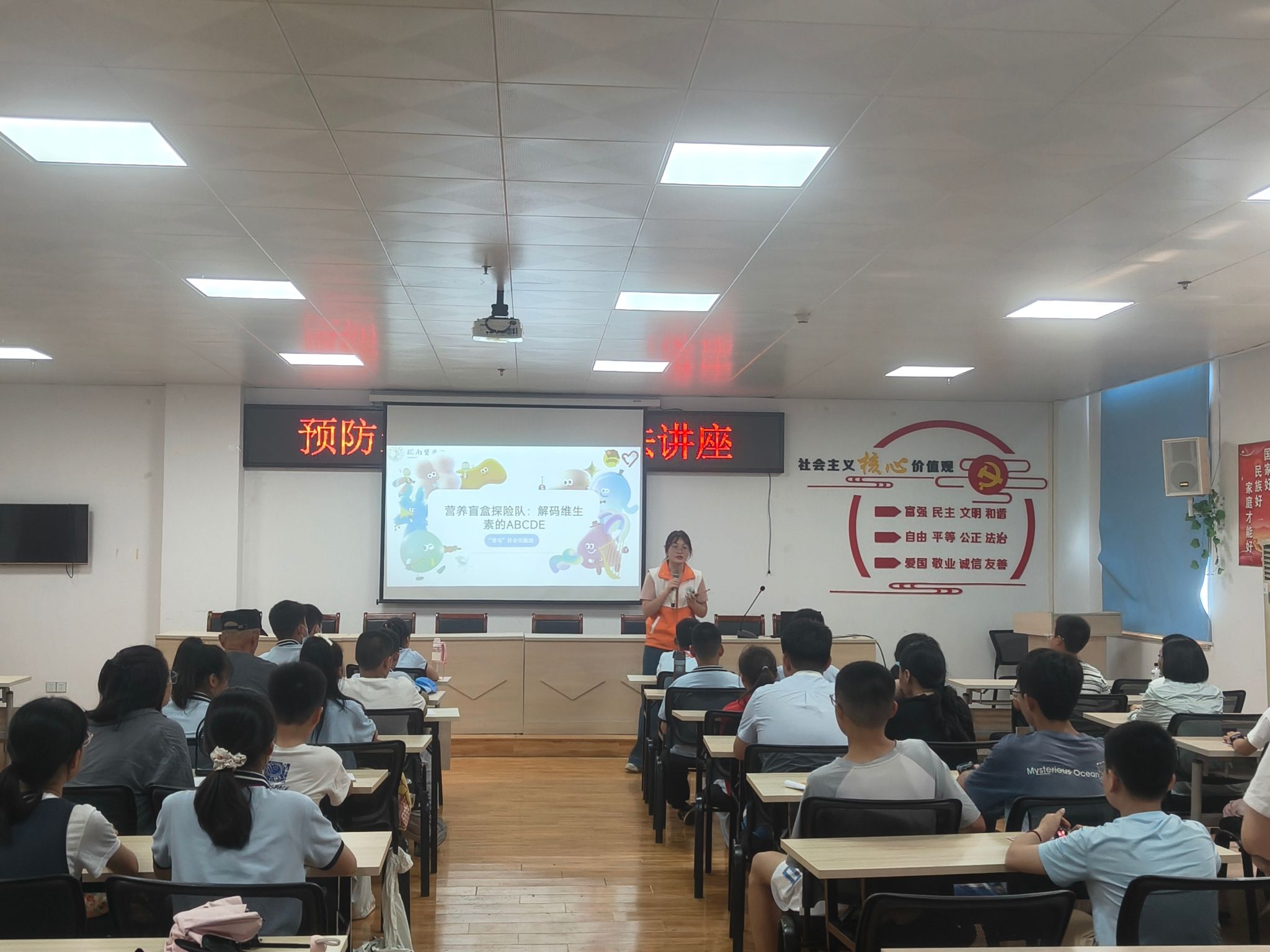 6月29日至7月6日,“青马”社会实践团的42名同学组成书院宣讲小分队,每天头顶烈日、脚踏热浪,前往芜湖弋江南书苑、滨江书苑、麓枫书苑等书院,开展了为期8天17场的“健康中国·科学膳食”主题宣讲活动,服务群众430余名。实践队员创新采用"理论+体验"模式,聚焦"三减三健"的核心理念,以通俗易懂的语言讲解慢性病防治和健康膳食等医学科普知识,同时设置了“食品添加剂我来认”“健康餐盘我来配”等趣味互动环节。活动博得了孩子与家长们的一致青睐,课程结束一位陪同家长更是感慨道:“原来少放一勺盐就是护心良方!”