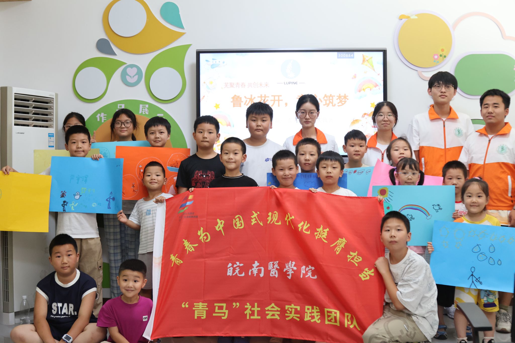 “姐姐,我们将来也要考你们皖医!”最后一节鲁冰花暑期课堂结束后,孩子们与实践团队员不舍道别。6月30-7月4日,获批2025年“芜聚青春 共创未来”芜湖市重点大学生社会实践团队的“青马”社会实践团的8名成员组队前往南陵县何湾镇与烟墩镇两地鲁冰花小屋开展了为期5天的“鲁冰花开,童心筑梦”鲁冰花暑期成长课堂活动,为当地50余名留守儿童打造了一个“以德育心、以智慧心、以体强心、以美润心、以劳健心”为主题的“七彩假期”。团队成员结合南陵县传统非遗、药材之乡、英雄故里等特色教育资源,聚焦儿童心理健康关爱开展了杏林小讲堂、悄悄话漂流瓶、我的幸福泡泡、中医八段锦等突出医学特色的多样化课程。