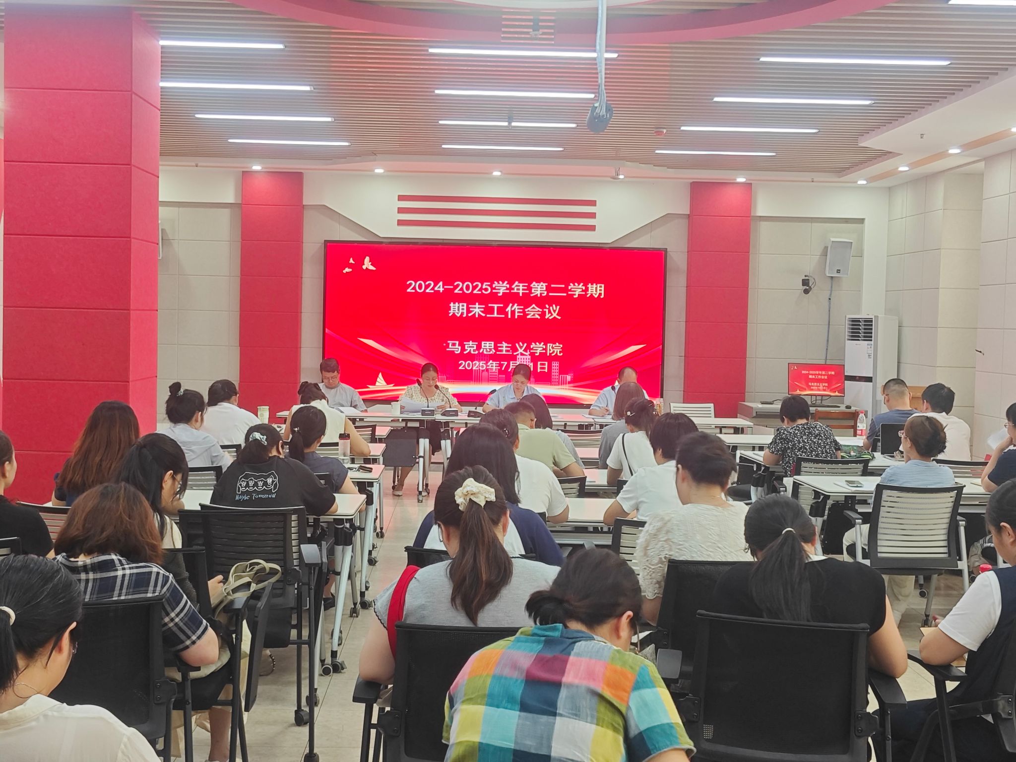 陶庭马从加强党建和思想政治工作、思政课改革创新、有组织科研、人才队伍建设等四个方面系统总结学院上半年工作,聚焦思政课教学质量提升、马理论学科建设、高层次人才引育等三项重点工作,对暑期和下学期重点工作任务进行了部署。