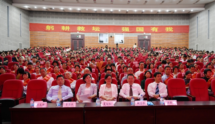 弘扬尊师重教传统,强化榜样引领感召,在全国第39个教师节来临之际,9月8日下午,我校在大学生活动中心礼堂召开第39个教师节表彰大会暨“十佳教师”颁奖典礼,对一年来取得优秀成绩教师、“十佳教师”提名人选和30年教育工作者进行表彰,并对学校首届“十佳教师”获得者进行颁奖。在校校领导夏劲松、姚应水、贾贤燕、王保中、韩永升出席表彰大会。大会由党委副书记、院长姚应水主持。