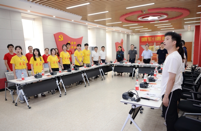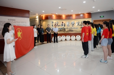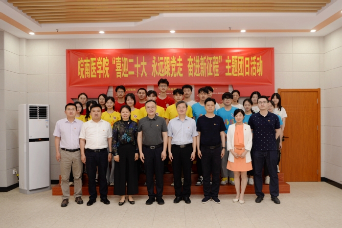 青春献礼二十大,强国有我新征程。5月30日下午,我校在思政课虚拟仿真实践教学中心举办“喜迎二十大  永远跟党走  奋进新征程”主题团日活动。团省委副书记、省青联主席李波,校党委副书记吴金月、副院长郑兰荣,团省委学校部部长邹永生、副部长张国栋,团市委兼职副书记钱彬彬出席活动,与20余名青年学子共赴青春之约。本次主题团日活动以“学党史 知团史 铭校史”为主线,结合医学院校历史和专业特色,围绕“守初心”“悟方向”“担使命”等关键词,打造了一场形式多样、内涵丰富的青春思政课。