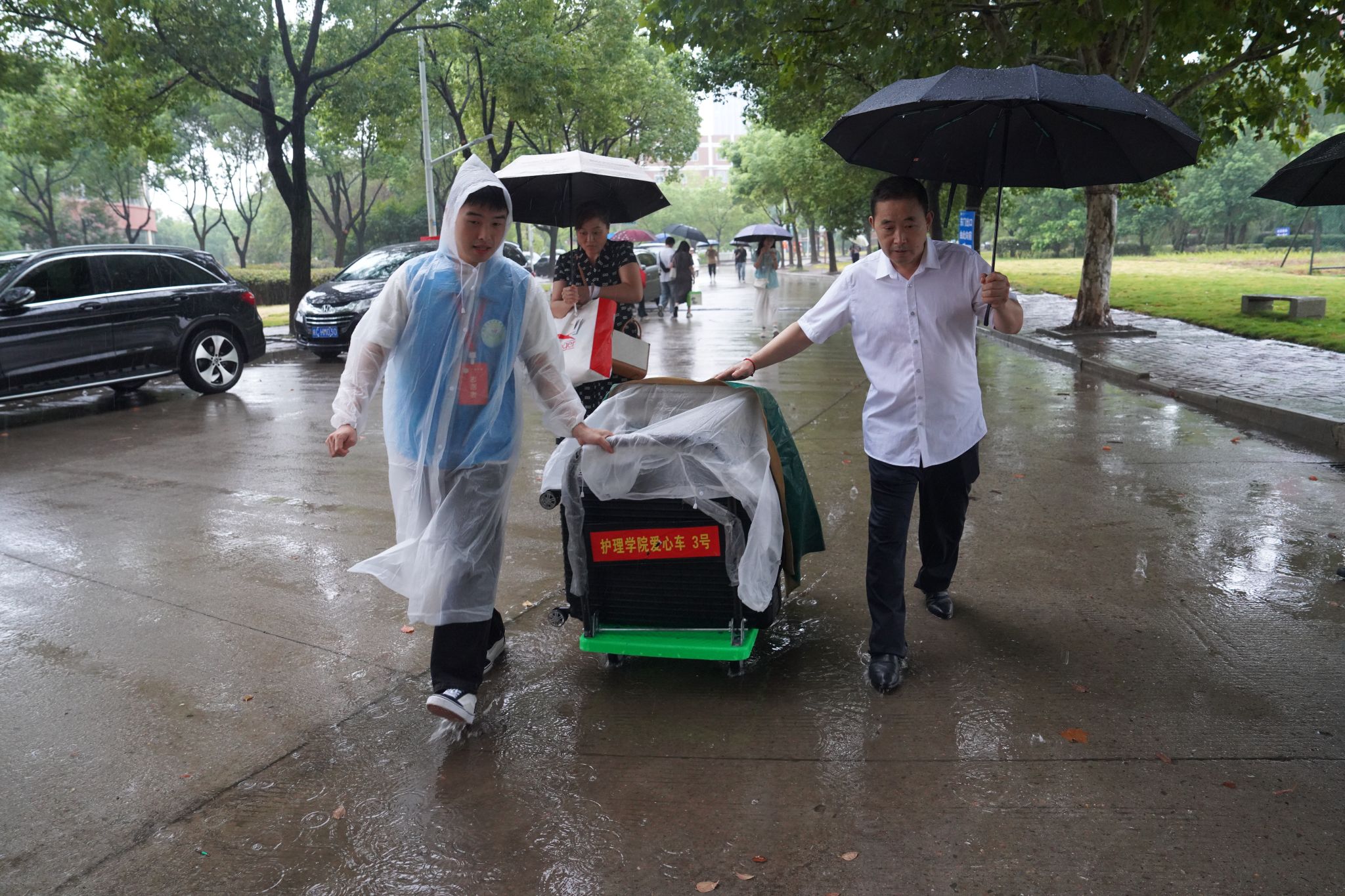 迎新首日,芜湖迎来入秋后的首场大雨。虽然大雨滂沱,但却淋不湿新同学与学校“双向奔赴”的温暖。学校及时优化报道地点、简化报道流程、开通绿色通道,并设置家长休息区,最大限度为学生报到提供方便。