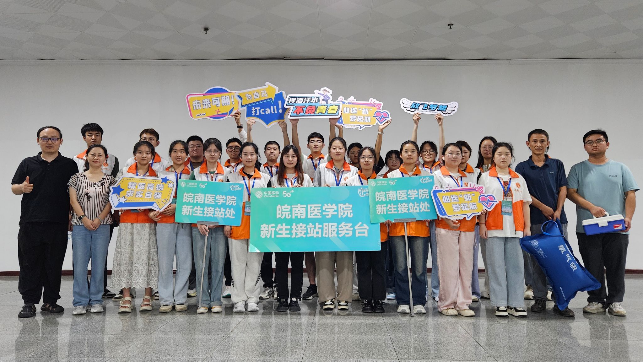 车站迎新志愿者合影